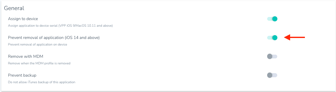 - Enable Setting: This setting applies to iOS 14 and above, preventing the removal of VPP applications.