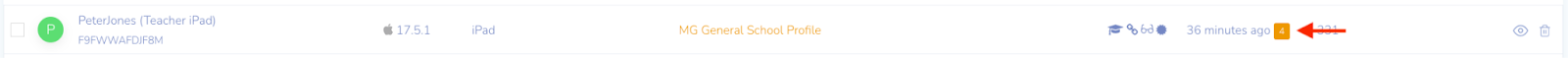 - In the Devices table, the LAST SEEN column includes an indicator for the number of incomplete MDM commands associated with a device.