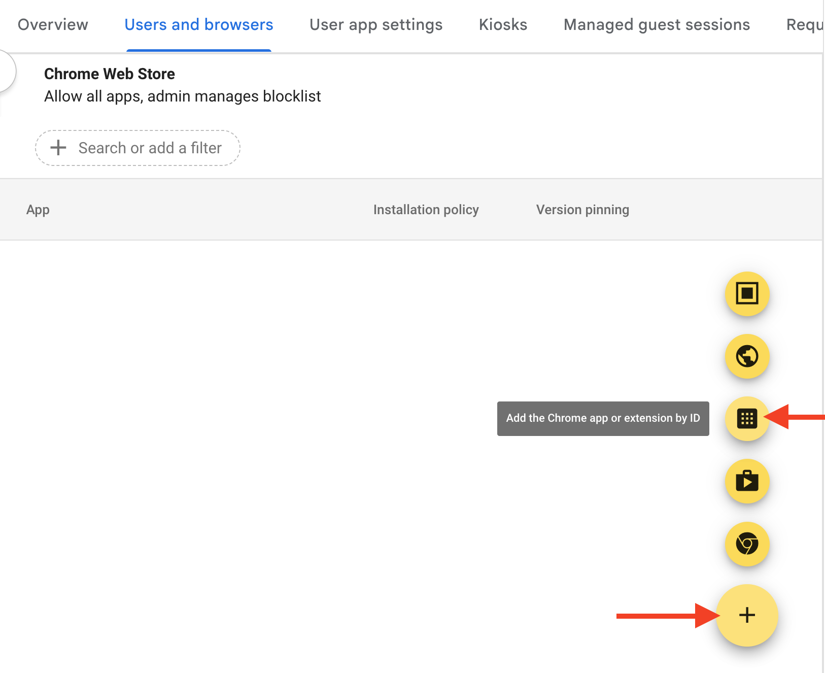 - Click Devices > Chrome > Apps & extensions > Users & Browsers.