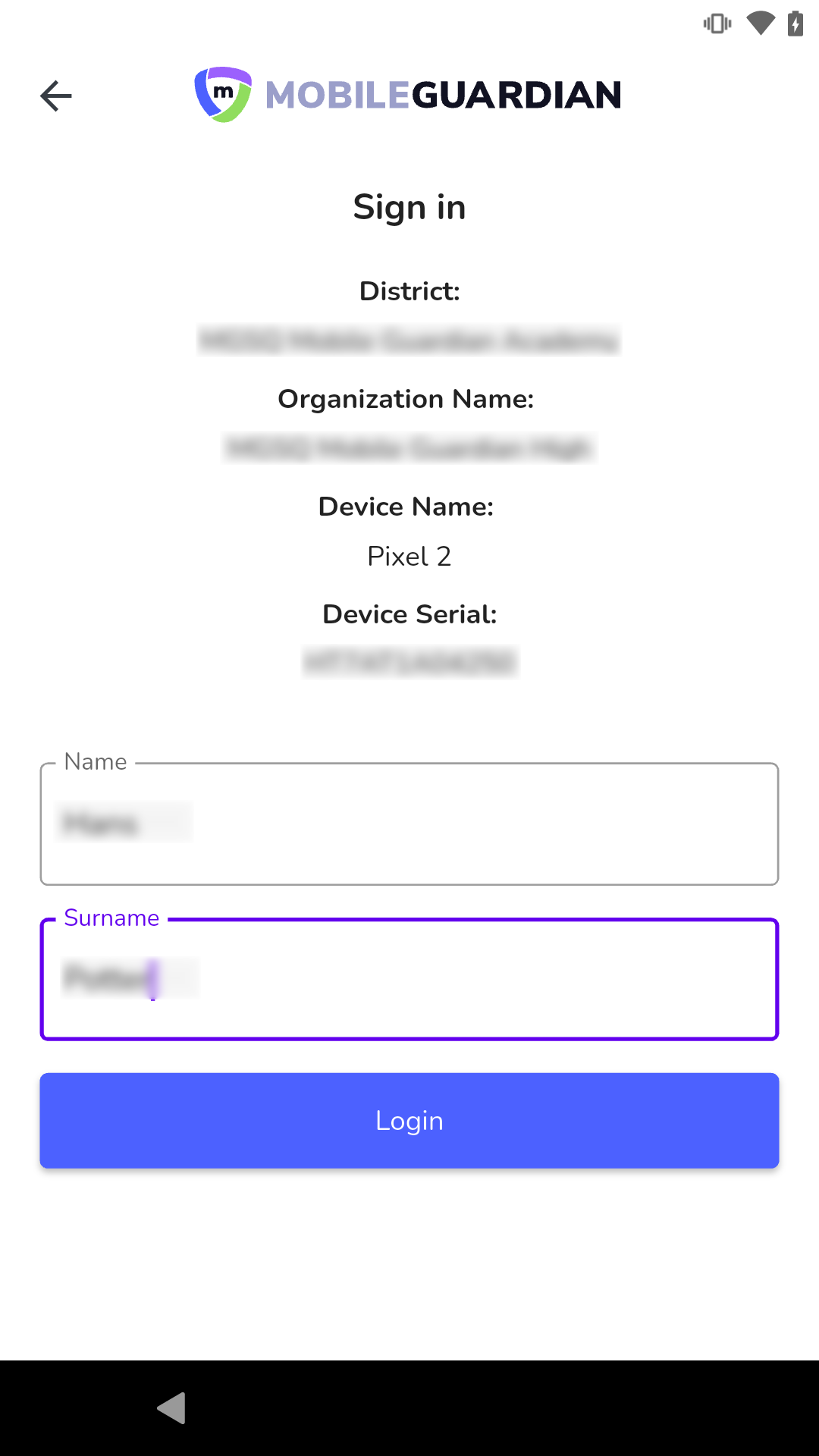 The device automatically applies the policies, school details, and other managed configurations. Upon application startup, the device is immediately locked to the Mobile Guardian application.