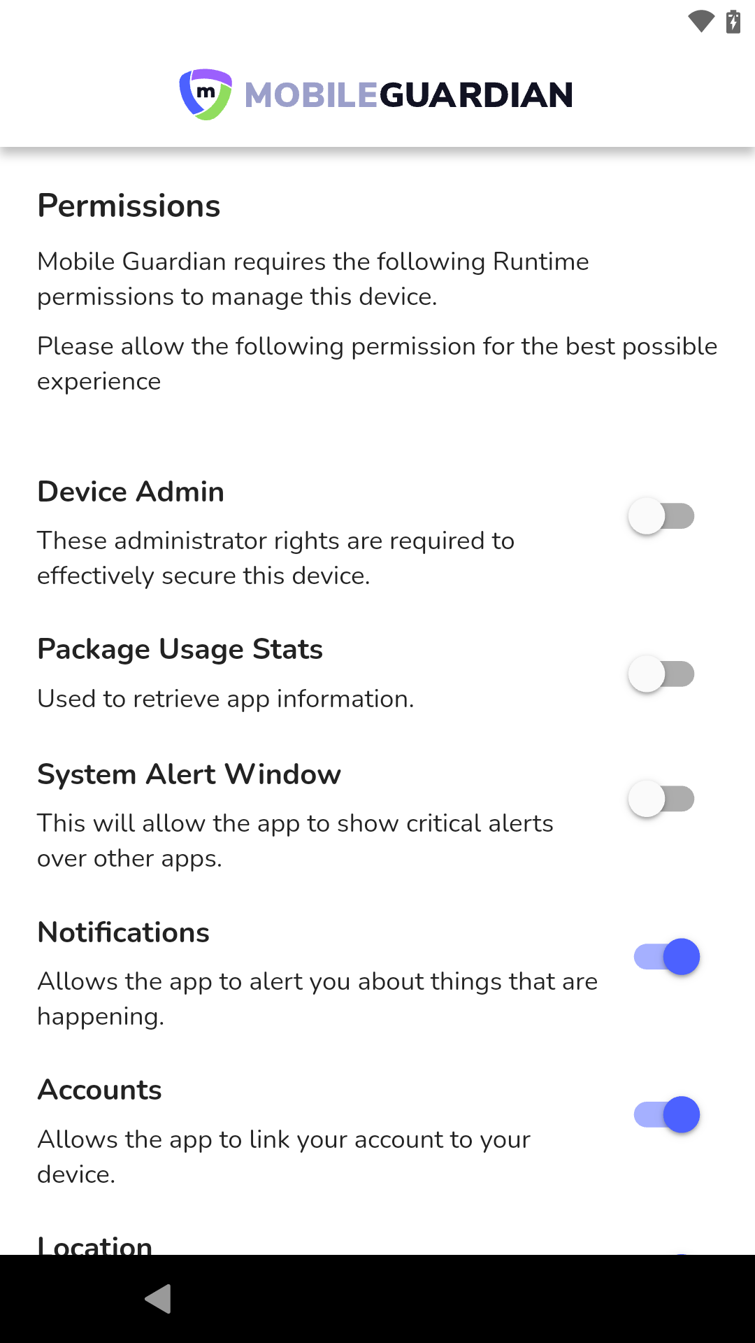 After successfully installing the Mobile Guardian app, you will be prompted to provide usage access to the app.