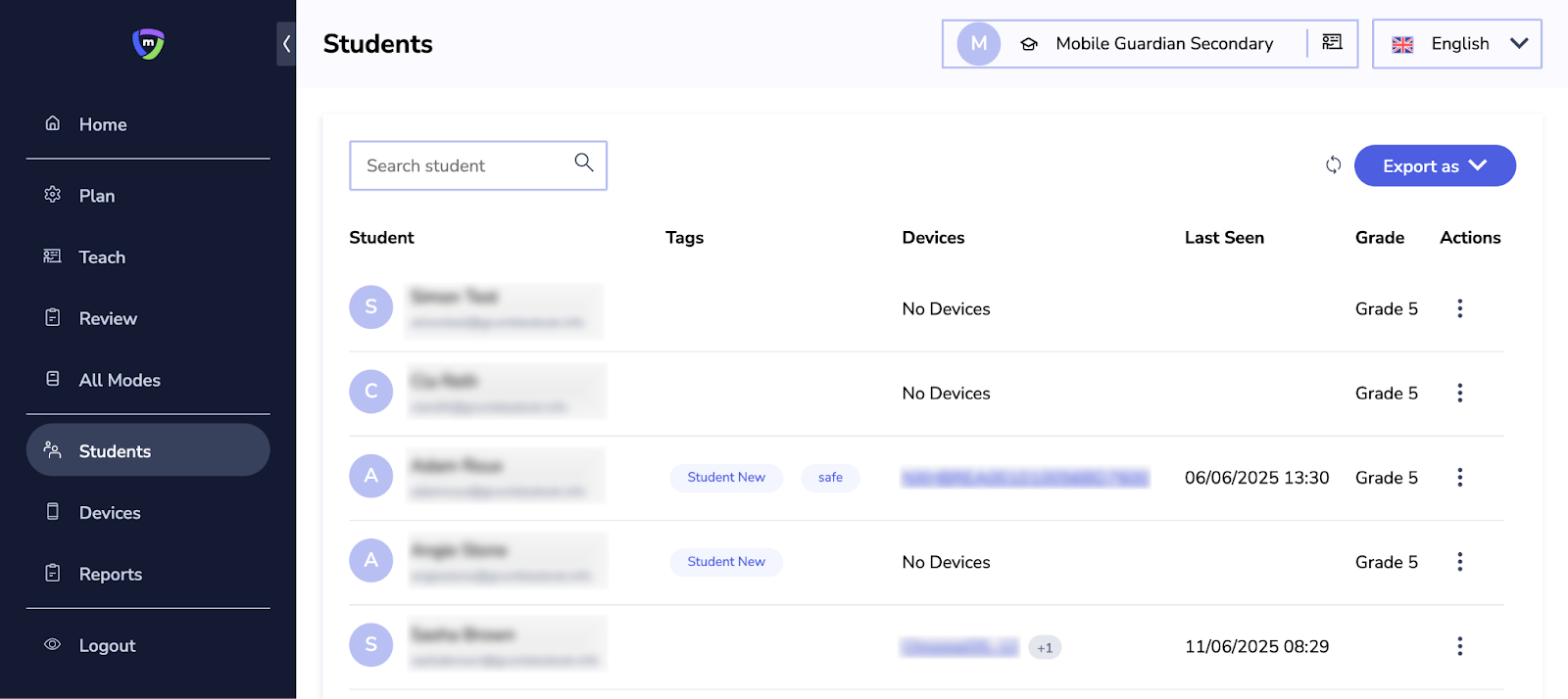 View, Edit, Search and Export students that you have added to your classes.
