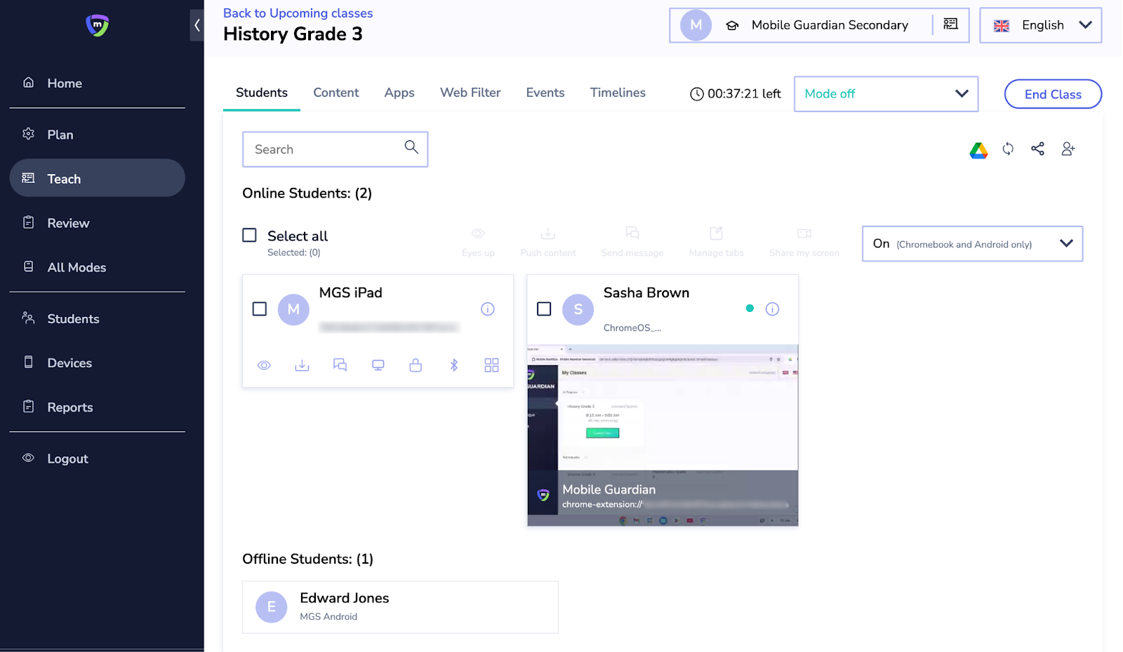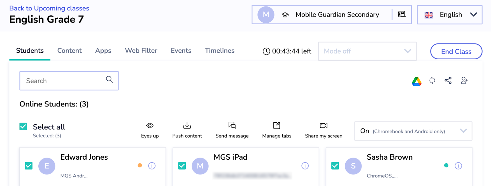 Different schools will have different policies about your “class join” method. Mobile Guardian allows the school and the teacher to decide on what best suits them.