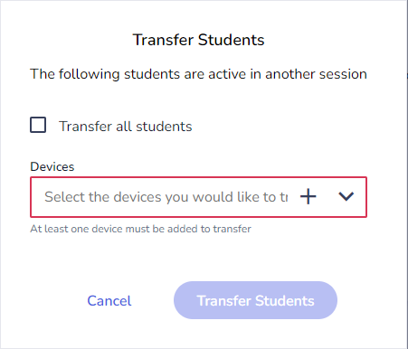 When automatic class join is enabled, a teacher will have the ability to transfer students from one active class to another. This means that, for some reason, if a teacher has forgotten to end one of their sessions and release the students/devices from that class, the next teacher will not need to contact that teacher to release those students.