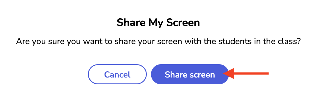 - A confirmation prompt will appear. Click Share my screen to proceed.