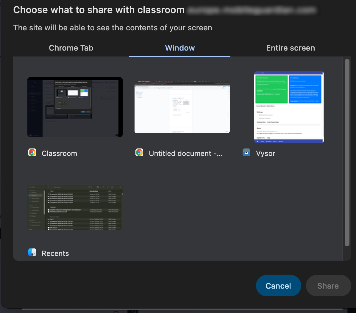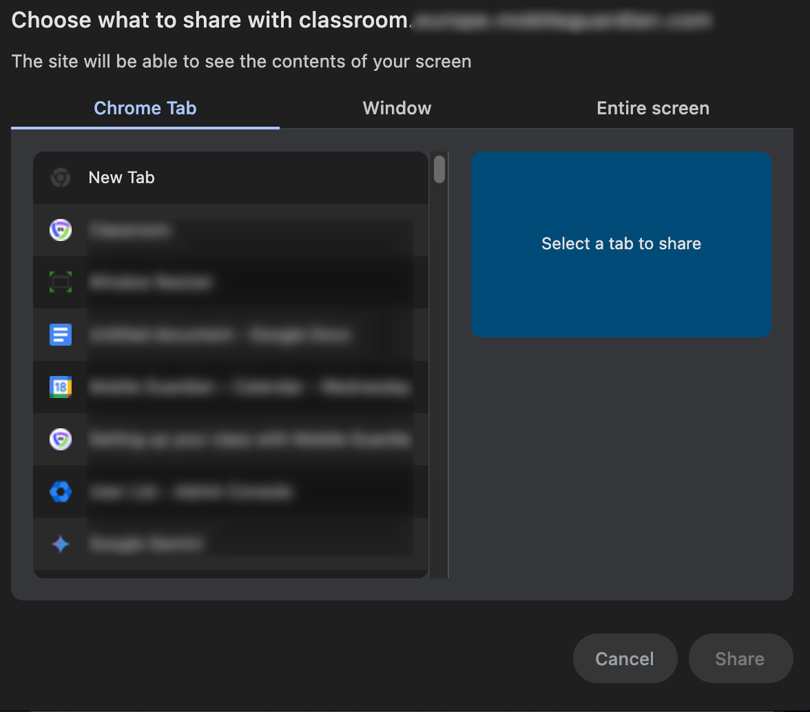 Student Screen Share on Chromebook