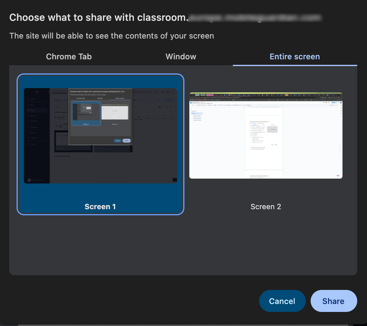 - Entire Screen: Share your entire screen.