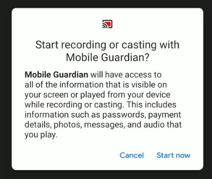 - Example of message: “Start recording or casting with Mobile Guardian”