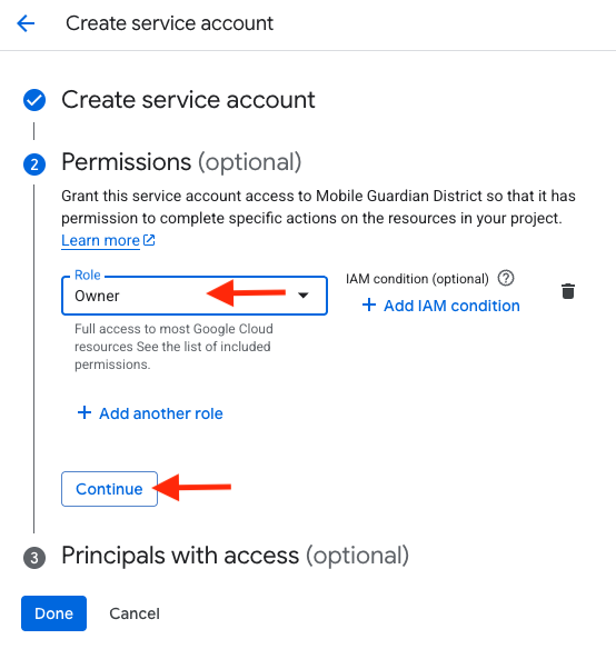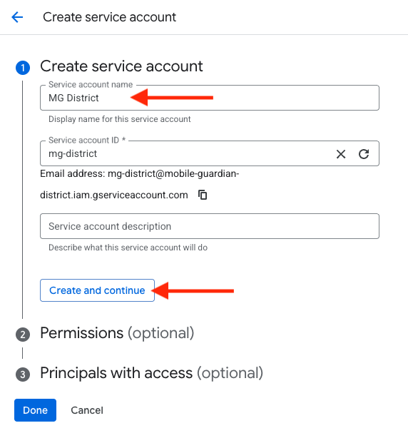 - Enter a service account name and click "Create and Continue".