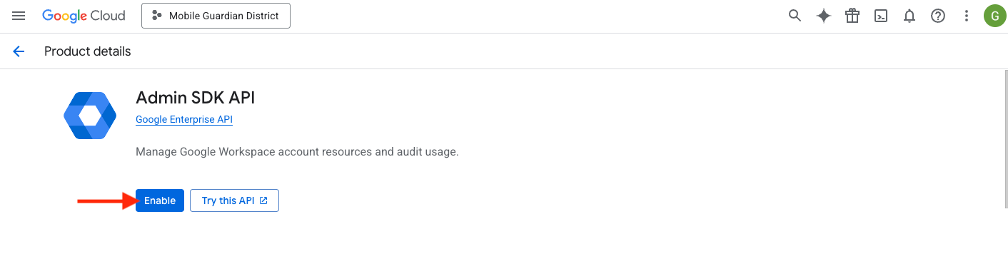 Enable Admin SDK API: