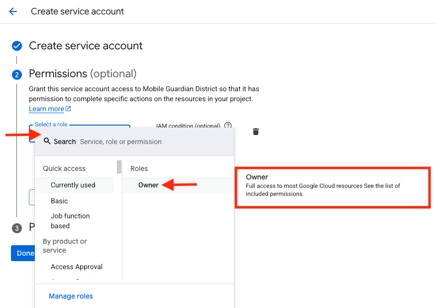 - From the "Role" drop-down menu, select "Quick Access" > "Owner", then click "Continue".