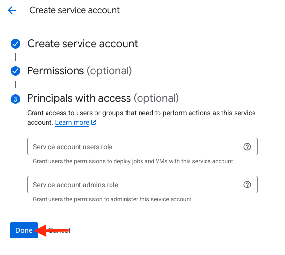 - Granting user access is optional, so you may click "Done".