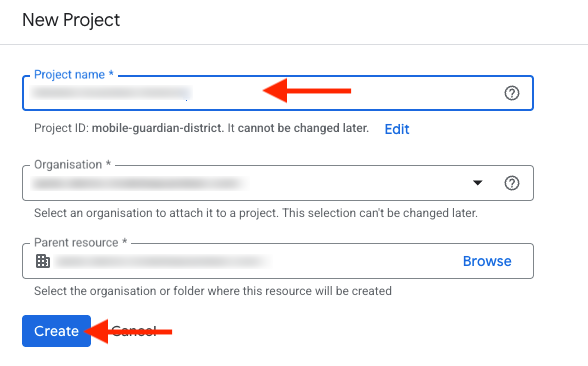 - Give your project a name that you will recognise in the future and click "Create".