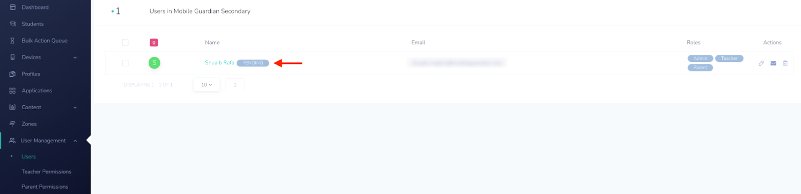 Once a parent has accepted the invite, their status under Users will no longer include the “PENDING” tag.