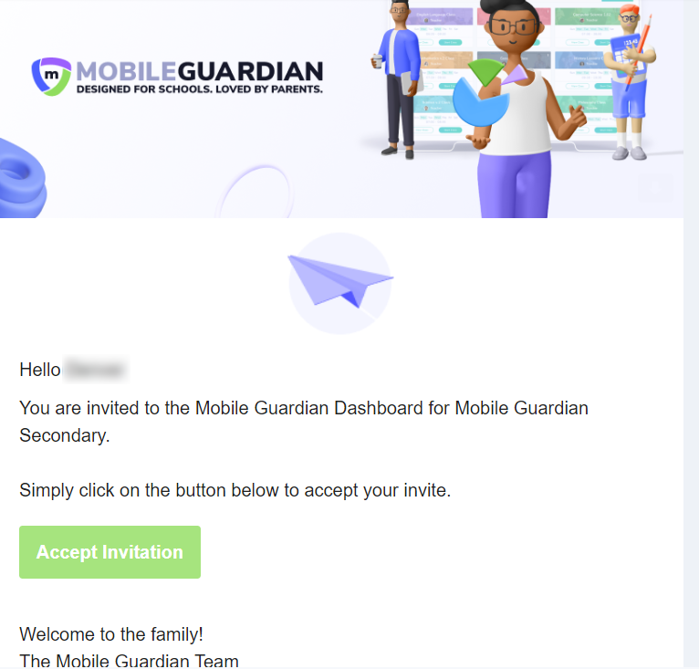 - The parent will receive an invitation email: