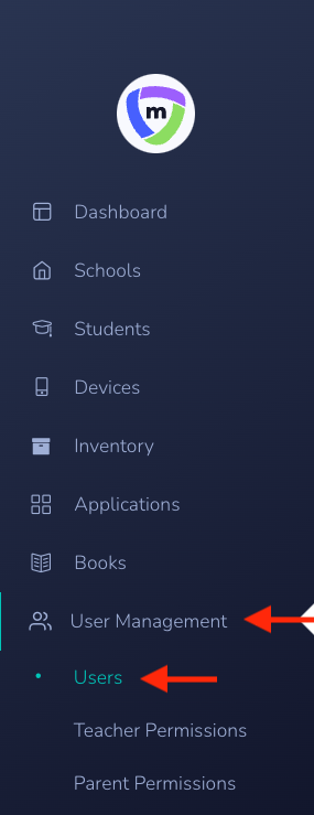 - On the navigation panel on the screen's left side, click User Management > Users.