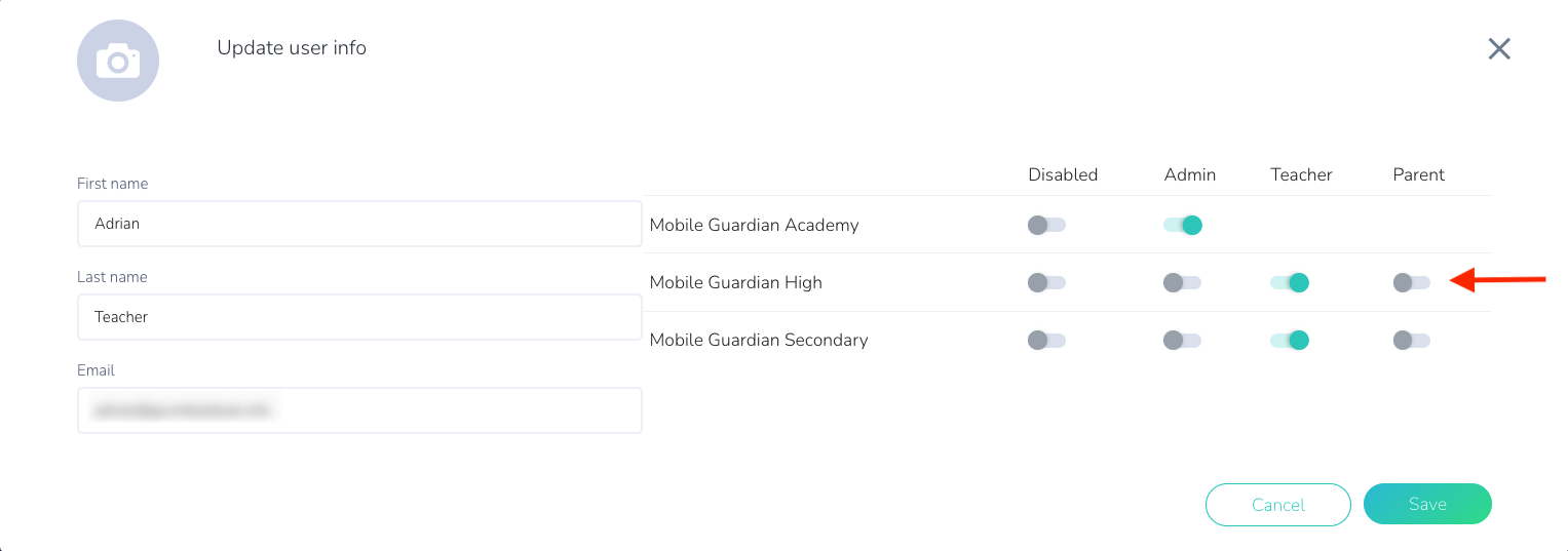 - You can also disable the user for all schools in the District or assign different roles to the user for a particular school.