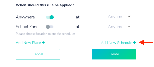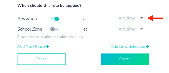 - In the drop-down menu next to "Anytime", select the schedule you have just created.