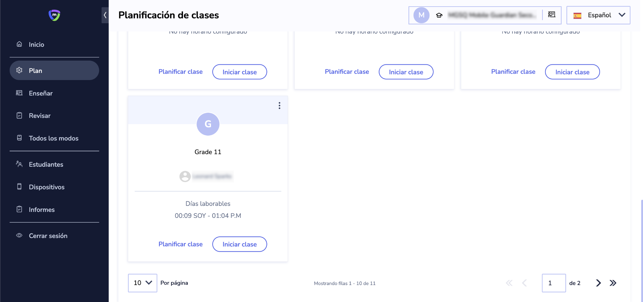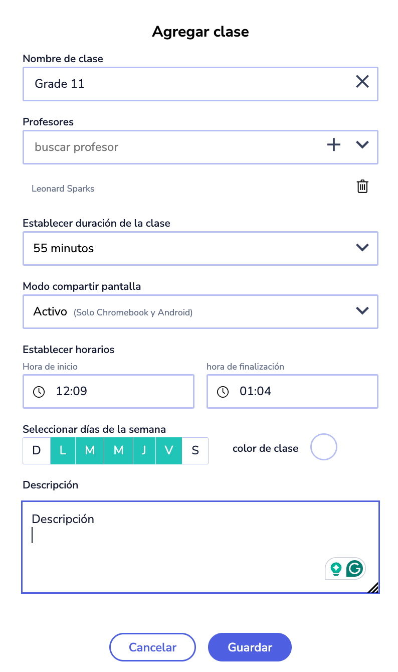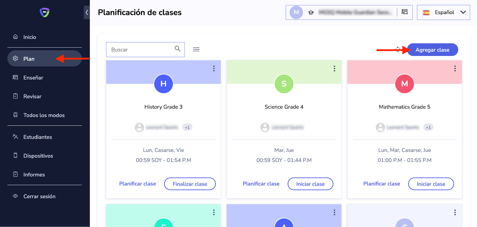 Añadir una clase al Panel de gestión de aula
