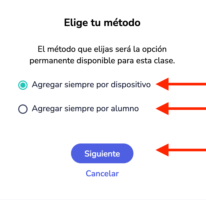 Puede decidir si desea añadir estudiantes o dispositivos a su clase.
