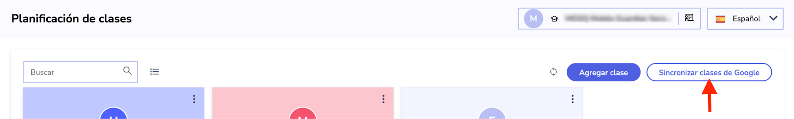 En el panel de control del profesor, puede sincronizar las clases seleccionando el botón Google Sync situado en la parte superior derecha de su panel.