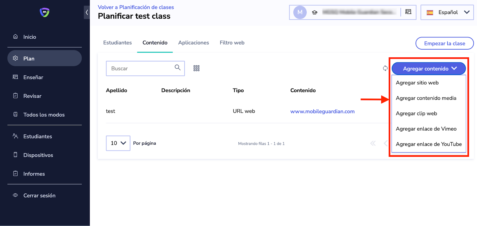El primer paso es definir el contenido que desea compartir durante sus clases; este contenido estará disponible en los dispositivos de los estudiantes.