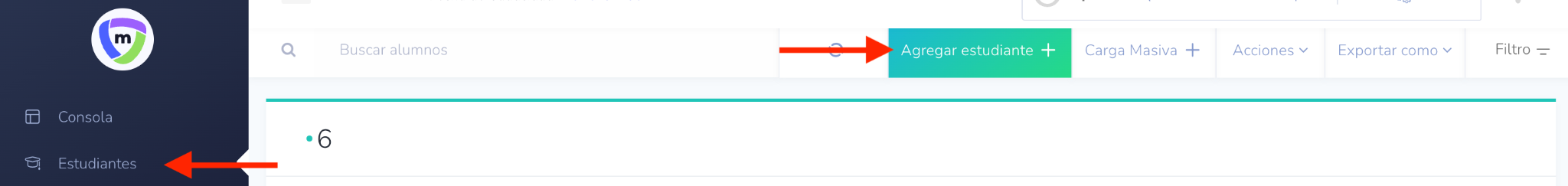 - Después de hacer clic en “Estudiantes”, será dirigido a la página de estudiantes. Haga clic en “Agregar estudiante” en la esquina superior derecha.