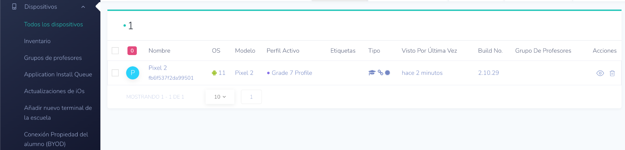 Para ver el dispositivo recién incorporado en su panel de control de Mobile Guardian: