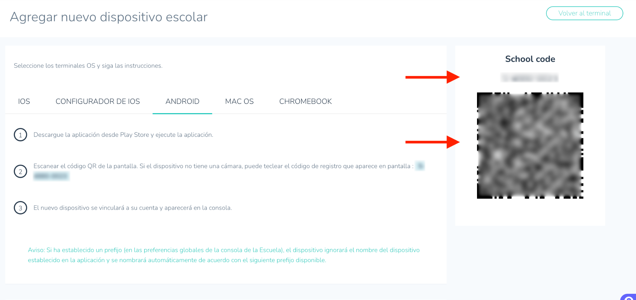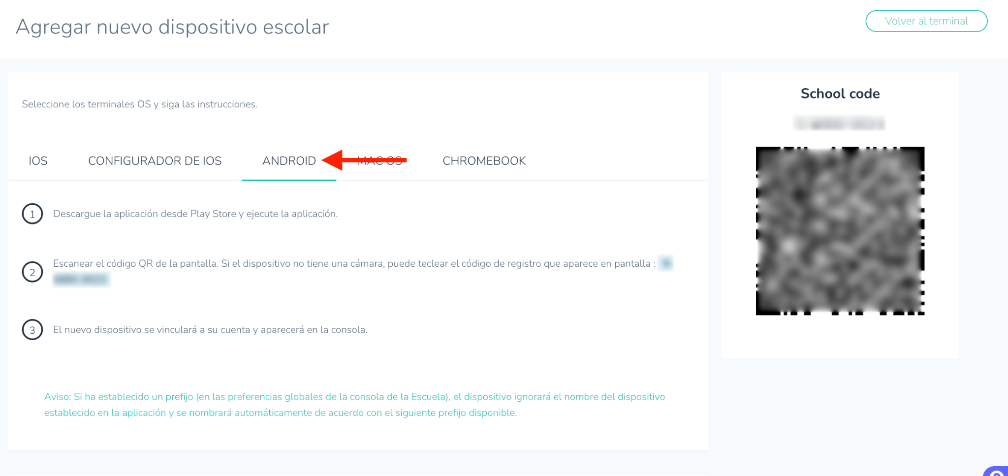 - Haga clic en Añadir nuevo terminal de la escuela.