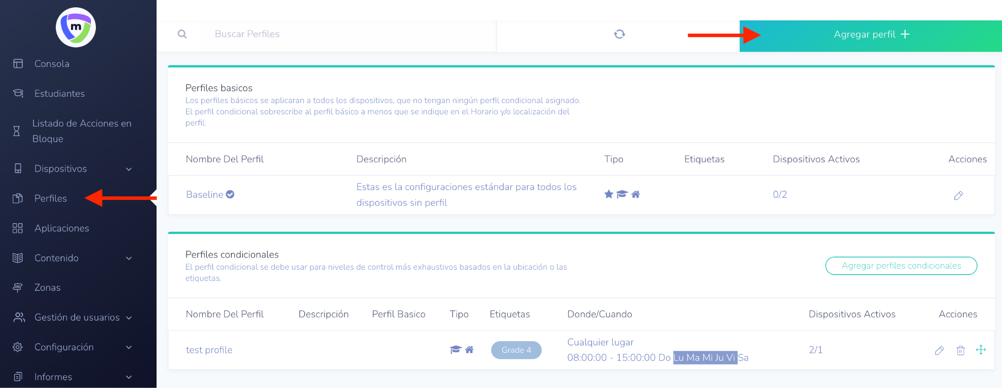 Después de completar estos pasos, su perfil estará creado y listo para usarse. Este perfil garantiza que los dispositivos sean monitoreados y gestionados de acuerdo con las ubicaciones, horarios, tipos de dispositivos y restricciones de contenido especificados.