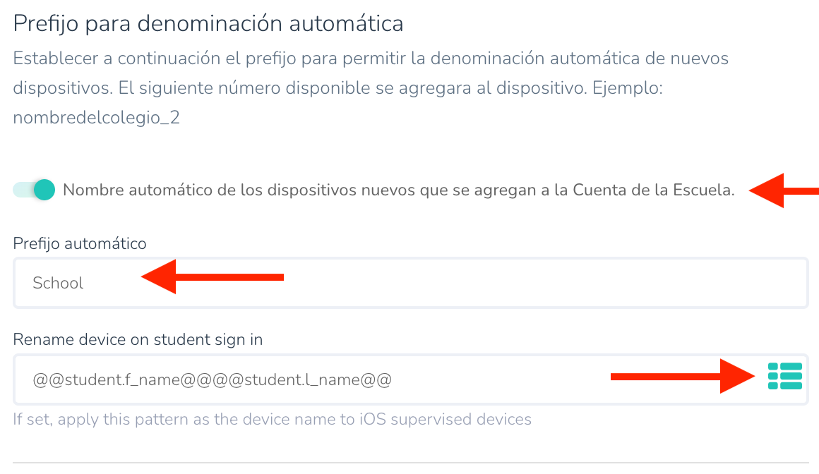A medida que se inscriban los dispositivos, se les asignará un nombre utilizando este prefijo seguido de un número secuencial.