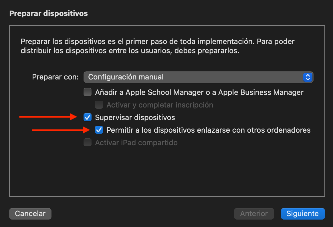 - Seleccione "Supervisar dispositivos"; es importante para configurar un dispositivo iOS supervisado.
