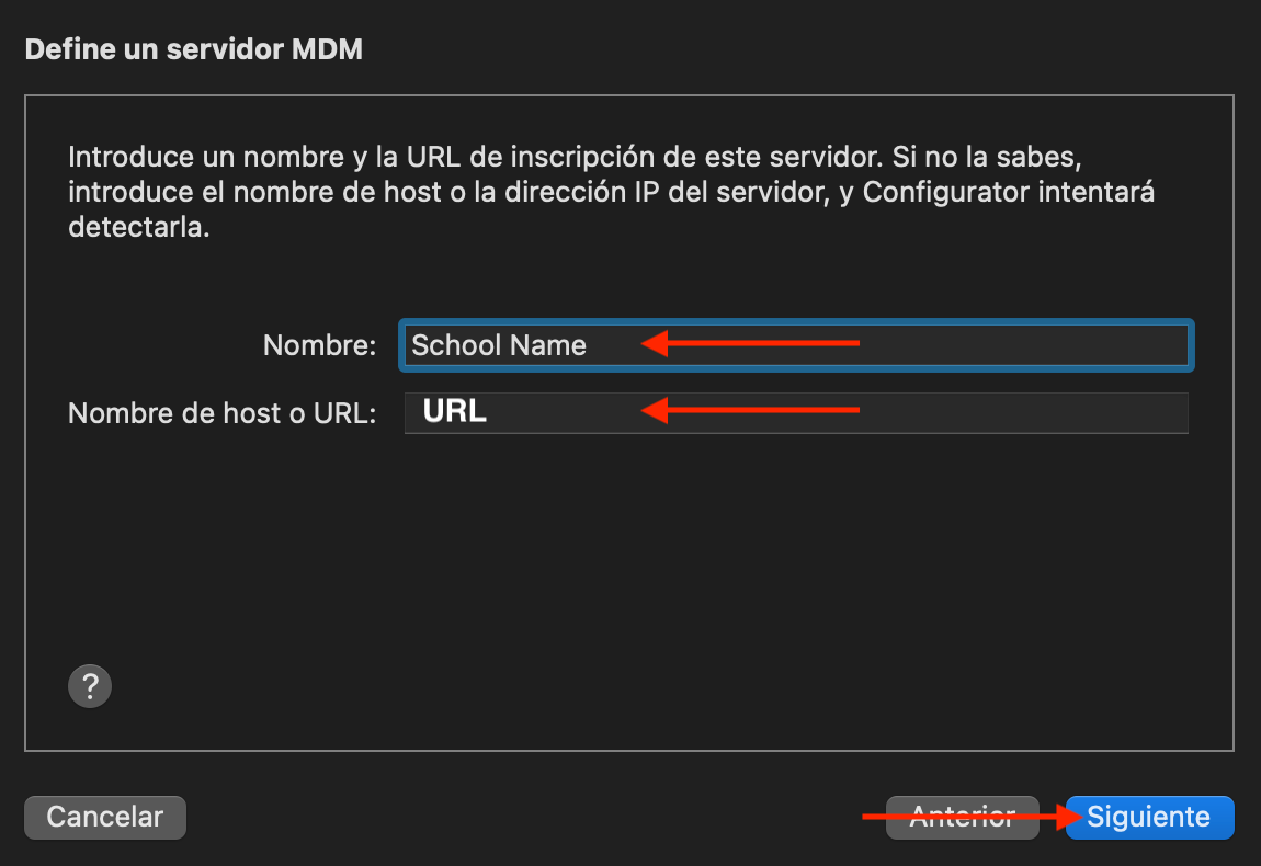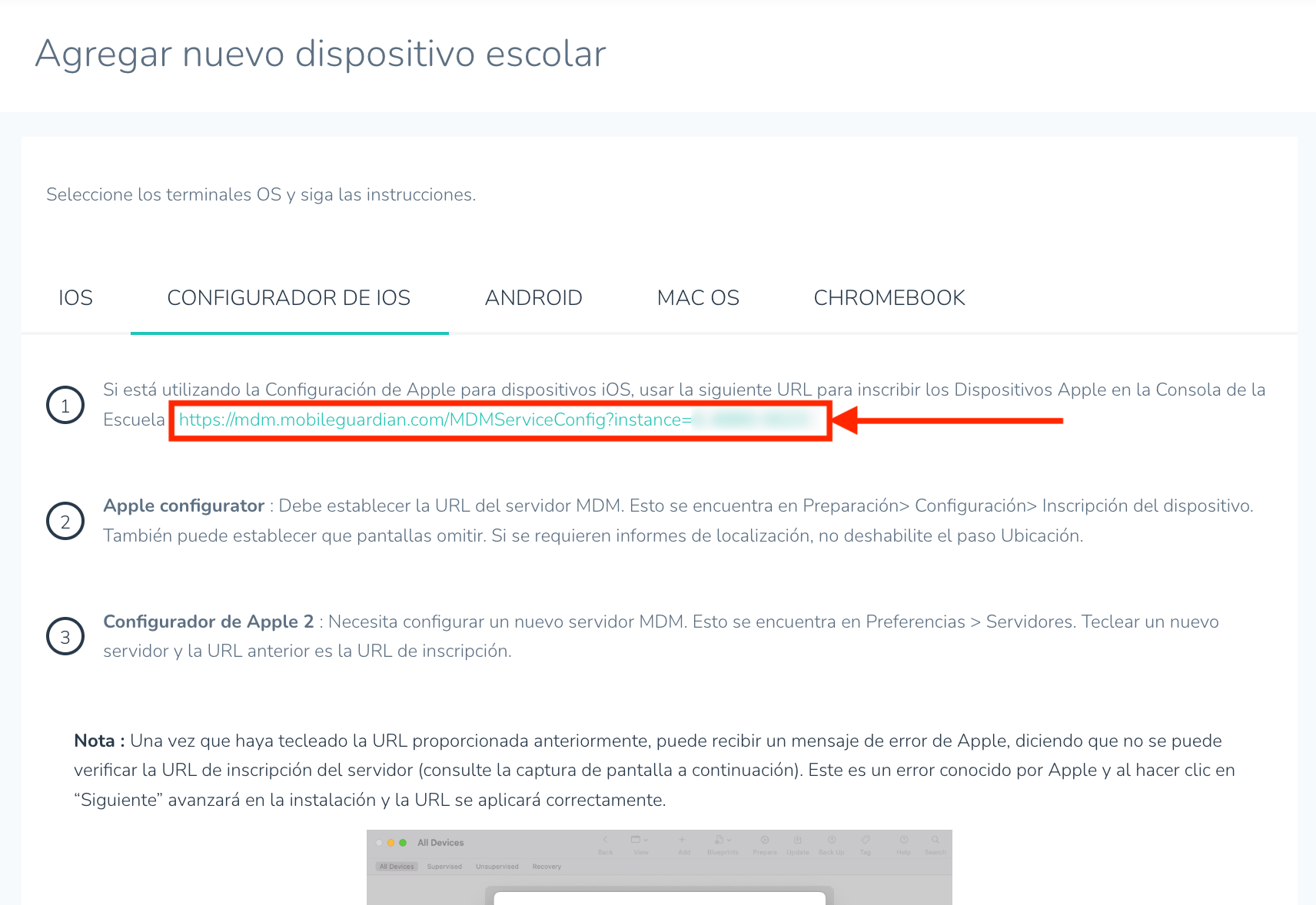 - Asegúrese de copiar la URL que aparece a continuación en su portapapeles para poder pegarla en el campo correspondiente durante el paso de preparación de Apple Configurator 2.