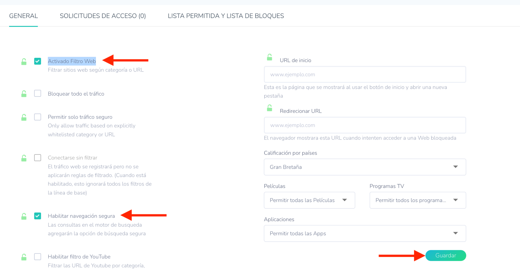 - Cómo configurar el Filtrado web.