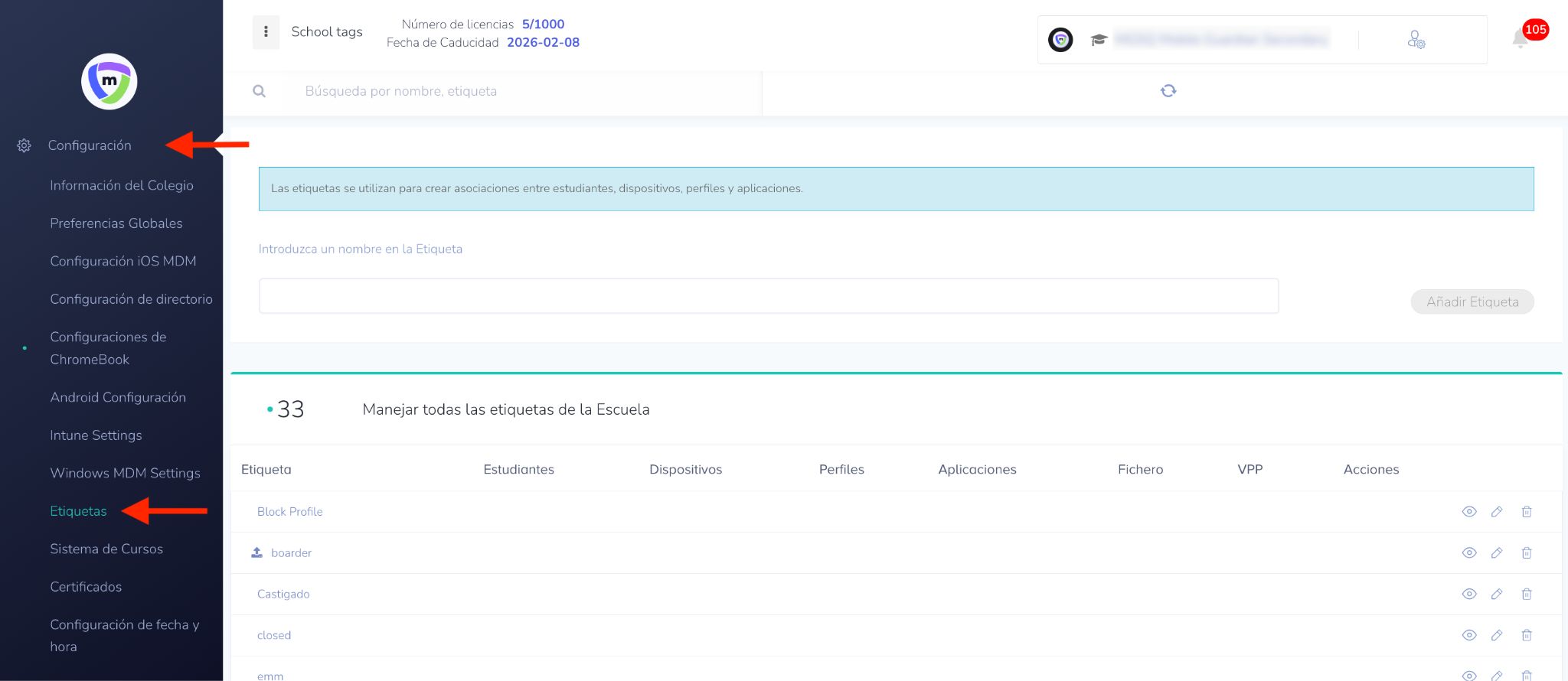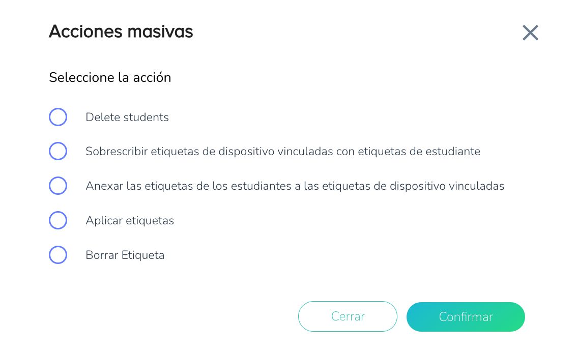Las etiquetas se pueden agregar de forma masiva a los estudiantes, lo que puede sobrescribir o añadirse a las etiquetas de los dispositivos vinculados. Esto es lo que puede hacer:
