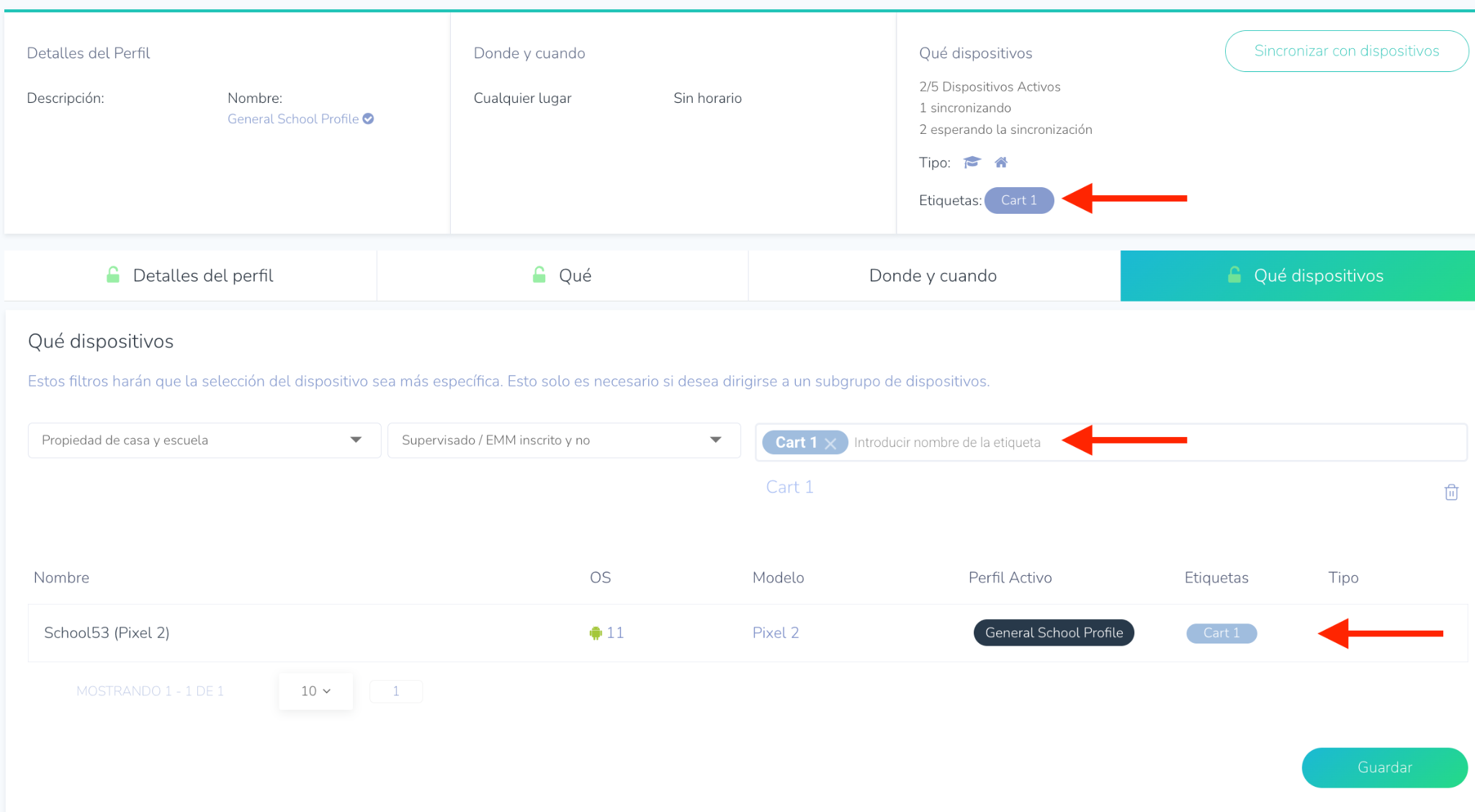 - El perfil 'Cart Devices' también tiene la etiqueta 'Cart 1'