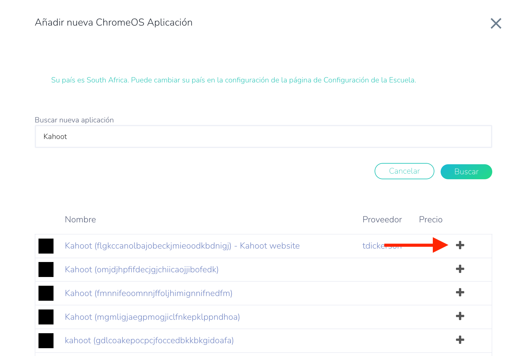 - En los resultados de búsqueda, haga clic en el icono "+" junto a la aplicación que desea seleccionar.
