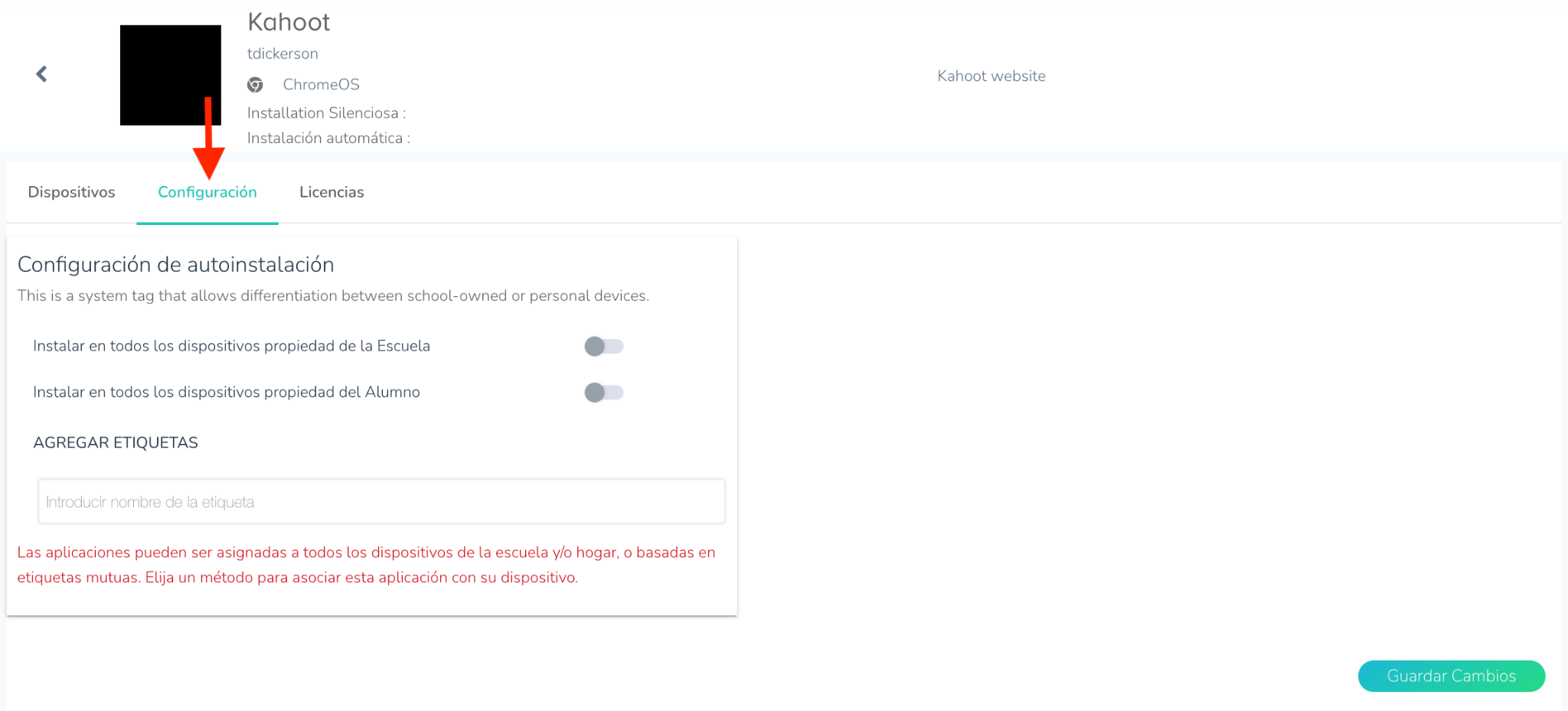 - Con las etiquetas, cualquier Chromebook que tenga la etiqueta necesaria reflejará la aplicación en la sección "Mi catalogo" de la extensión de Mobile Guardian.