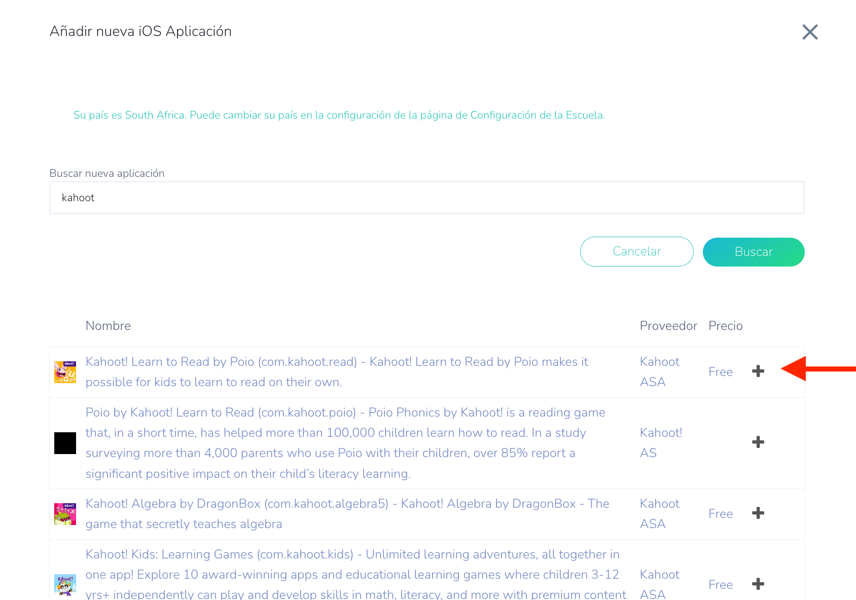 - Añadir aplicación: Haga clic en el icono "+" junto a la aplicación para añadirla.