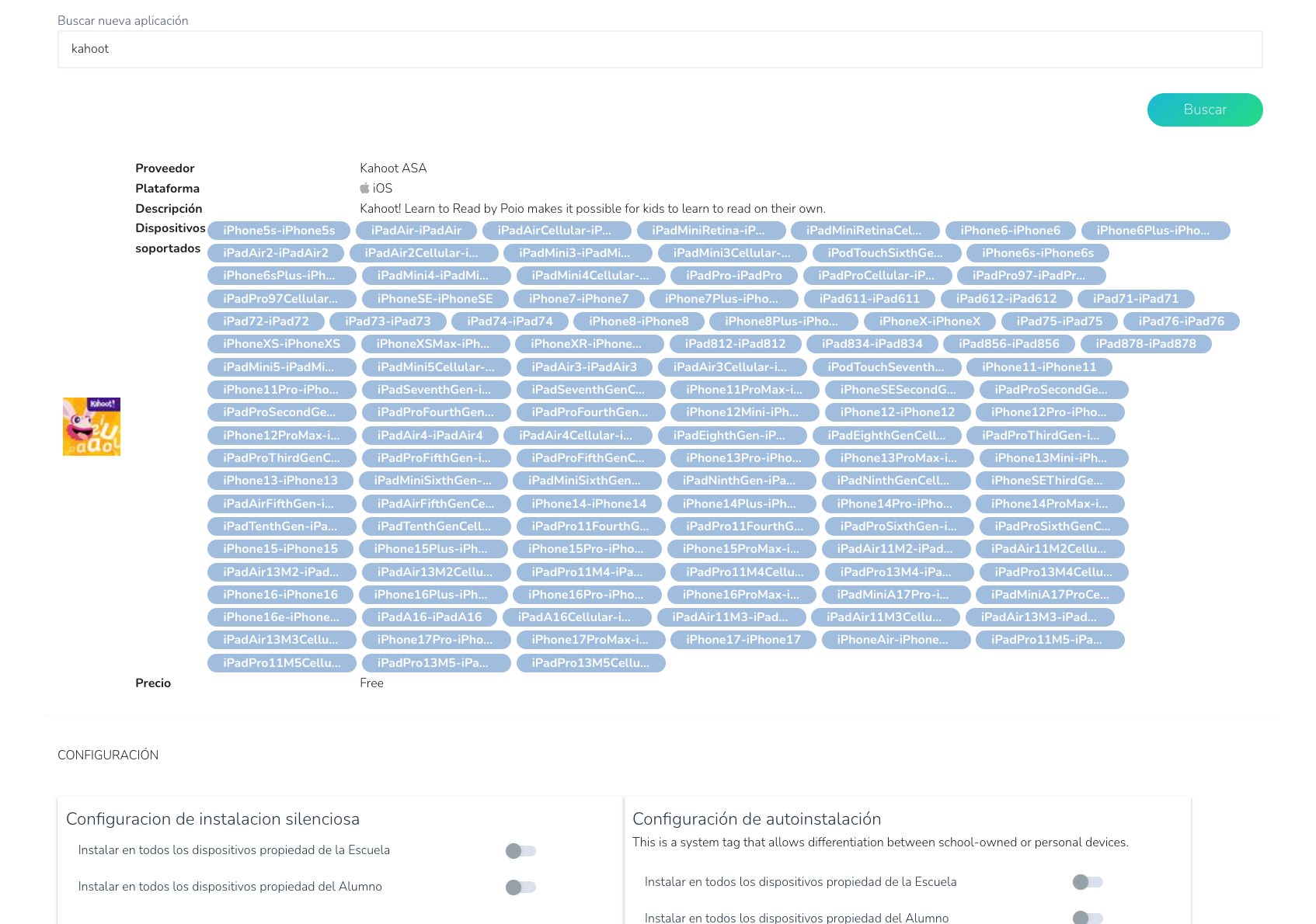 - Dispositivos compatibles: Revise la pantalla que especifica los dispositivos compatibles con la aplicación.