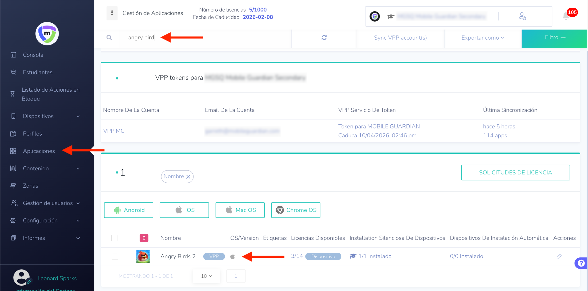 Un administrador puede utilizar esta función para verificar si el comando para eliminar la aplicación de Mobile Guardian se ha enviado correctamente a un dispositivo específico. Esto ayuda a identificar y solucionar cualquier problema de despliegue.
