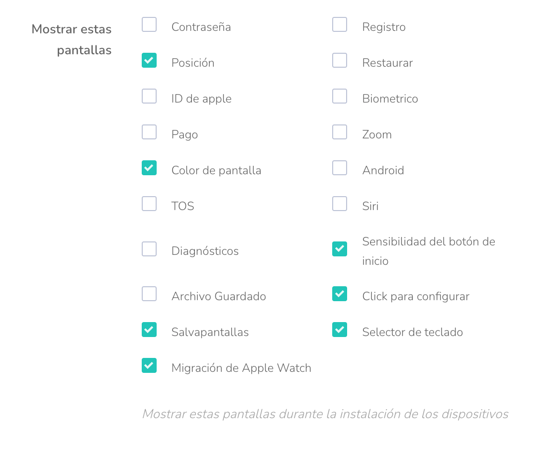 Configure las pantallas que se omitirán durante la configuración del dispositivo: