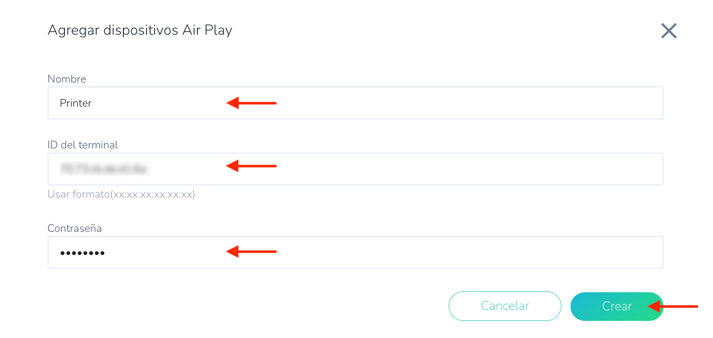 - ID del terminal: Introduzca el ID del dispositivo. Este campo es obligatorio.