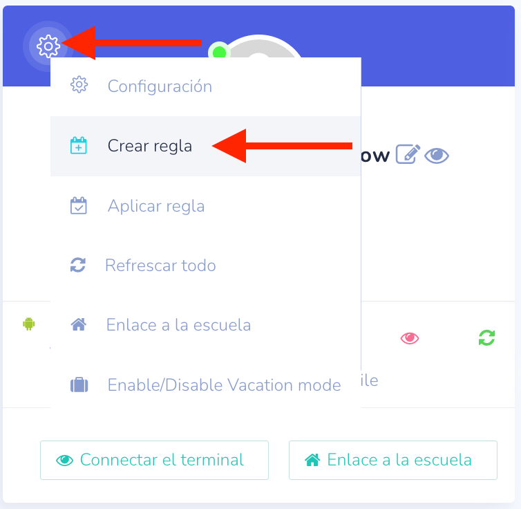 - De vuelta en su pantalla de inicio, haga clic en el icono de Configuración del niño seleccionado al que desea aplicar la regla.