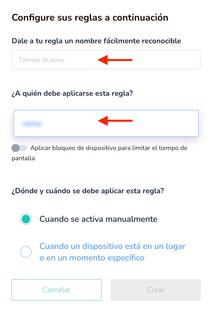 - Seleccione al niño al que desea aplicar la regla.