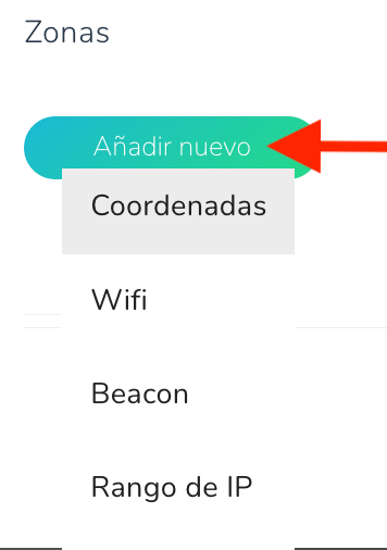 - Haga clic en “Añadir nuevo” y seleccione el tipo de zona que desea utilizar.