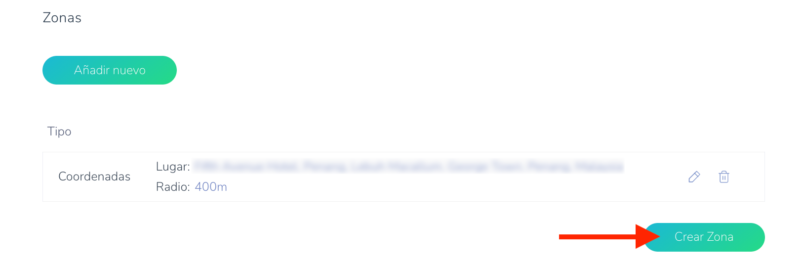 - Una vez que la zona haya sido añadida, haga clic en “Crear Zona”.