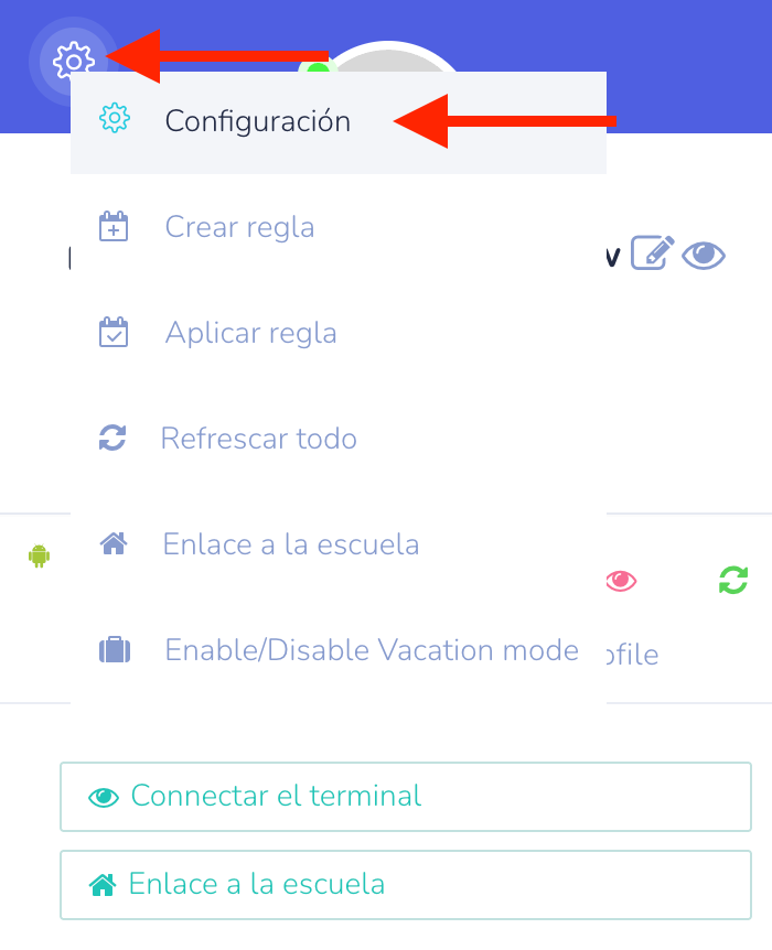 - Vaya a la sección de Configuración en la tarjeta de su hijo.