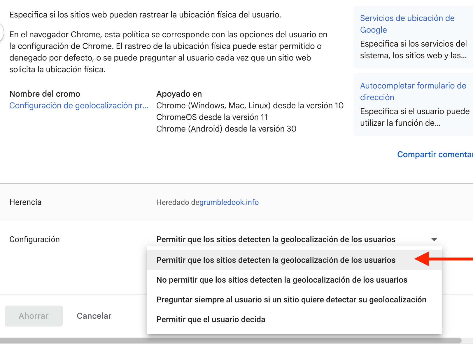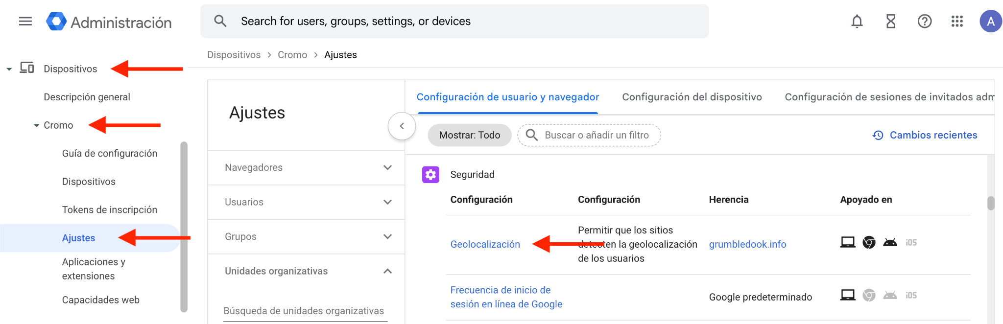 Control de la configuración de ubicación a través de la Consola de Administración de Google