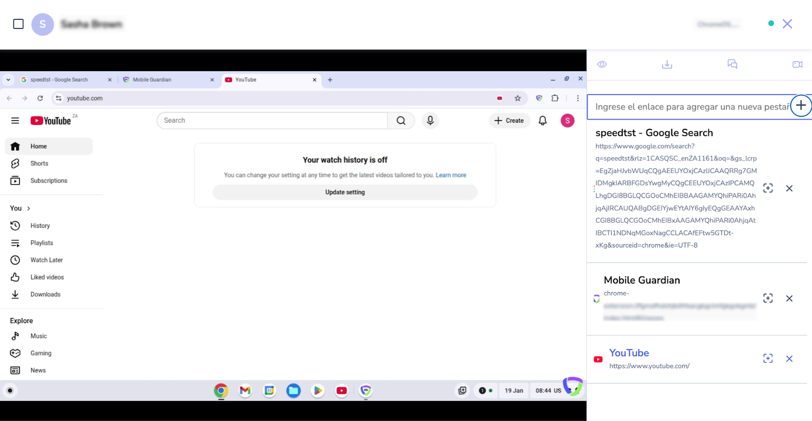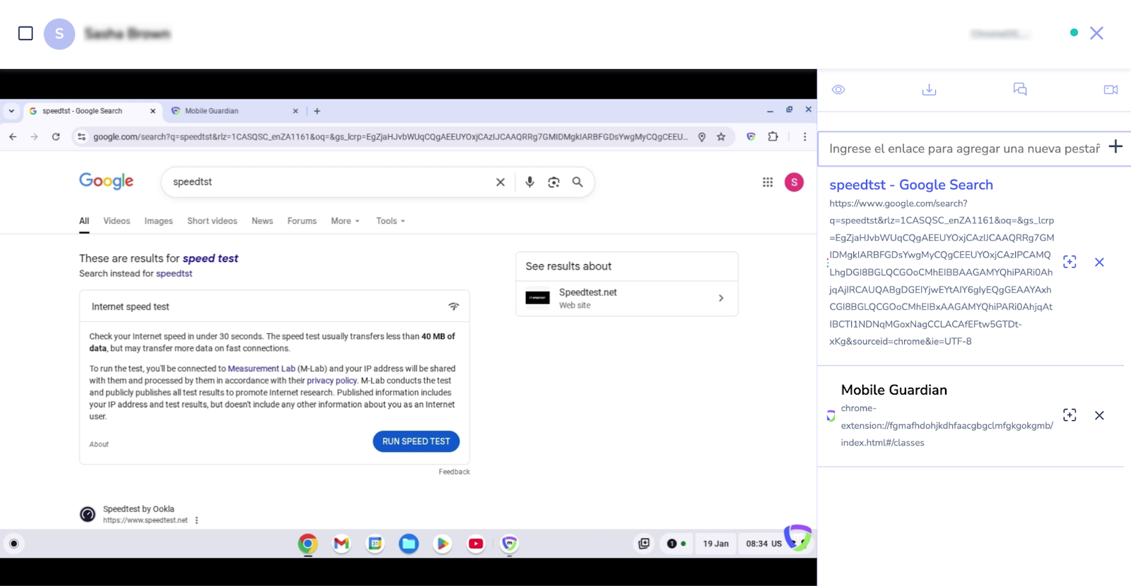 Usted tiene la capacidad de ver, abrir y cerrar pestañas del navegador en el Chromebook de un estudiante en particular o de todos los estudiantes dentro de una sesión.